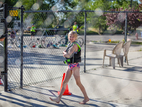 Finally they start with the swim (life jackets are allowed, but not required for the kids' tri):